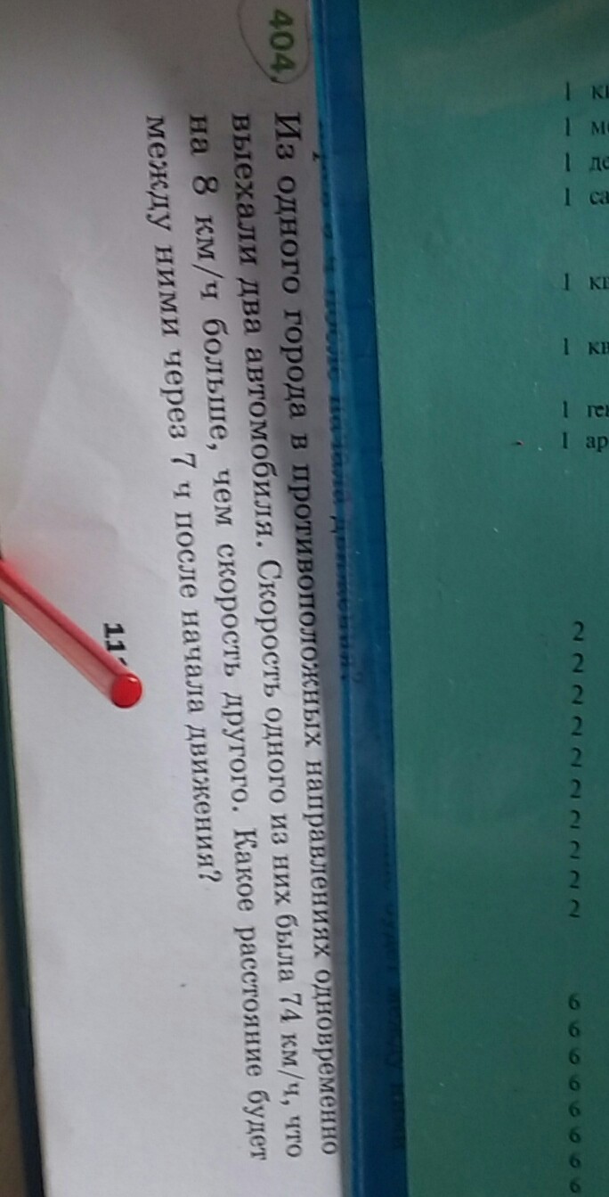 из одного города в противоположных направлениях одновременно выехали два автомобиля. Скорость одного из них была 74 км ч Что на 8 километров час больше чем скорость другого Какое расстояние будет между ними через 7 часов после начала движения