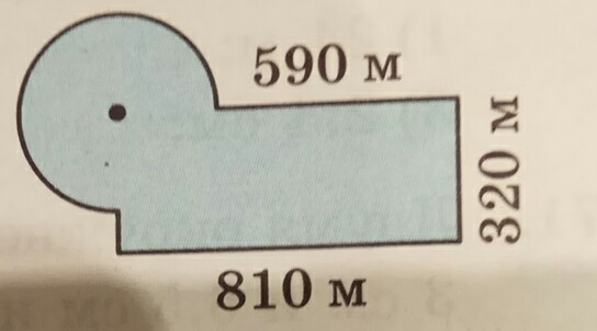Радиус круга равен 810 - 590 = 220 м, его площадь