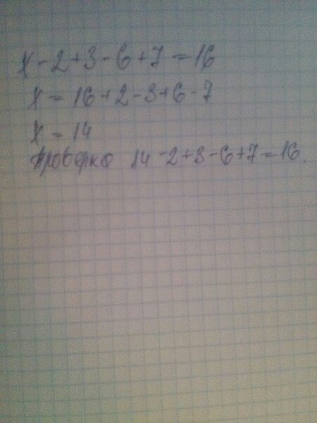 В комнате находилось несколько человек. Сначала вышли 2 человека и вошло 3, потом вышли 6 человек и вошло 7. В комнате стало 16 человек. Сколько человек было в комнате первоначально?