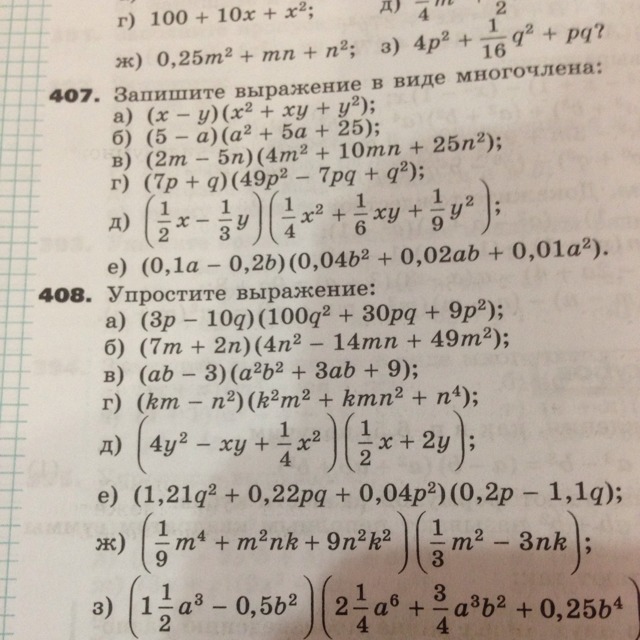 д) (1/2x-1/3y)(1/4x`2+1/6xy+1/9y`2)