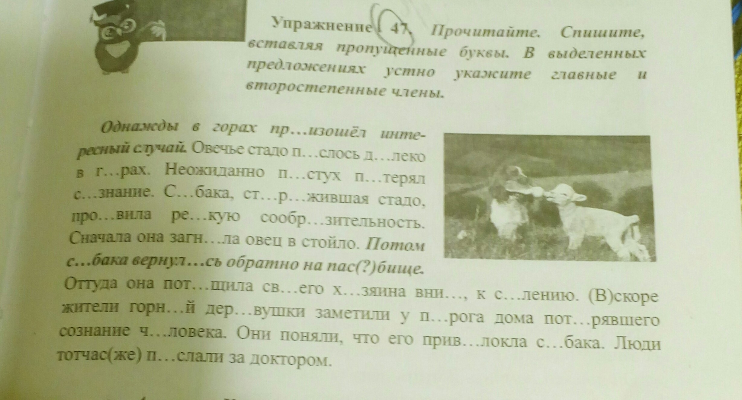 Произошёл, паслось, далеко, горах. Пастух потерял сознание. Собака сторожившая проявила резкую сообразительность загнала. Собака вернулась пастбище