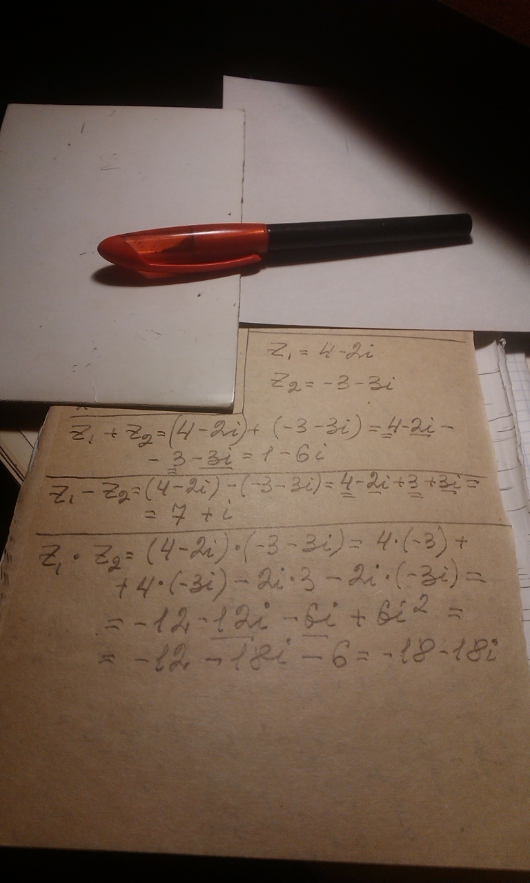 3) (4-2¡) *(-3-3¡) =-12-12¡+6¡+6¡(в квадрате)