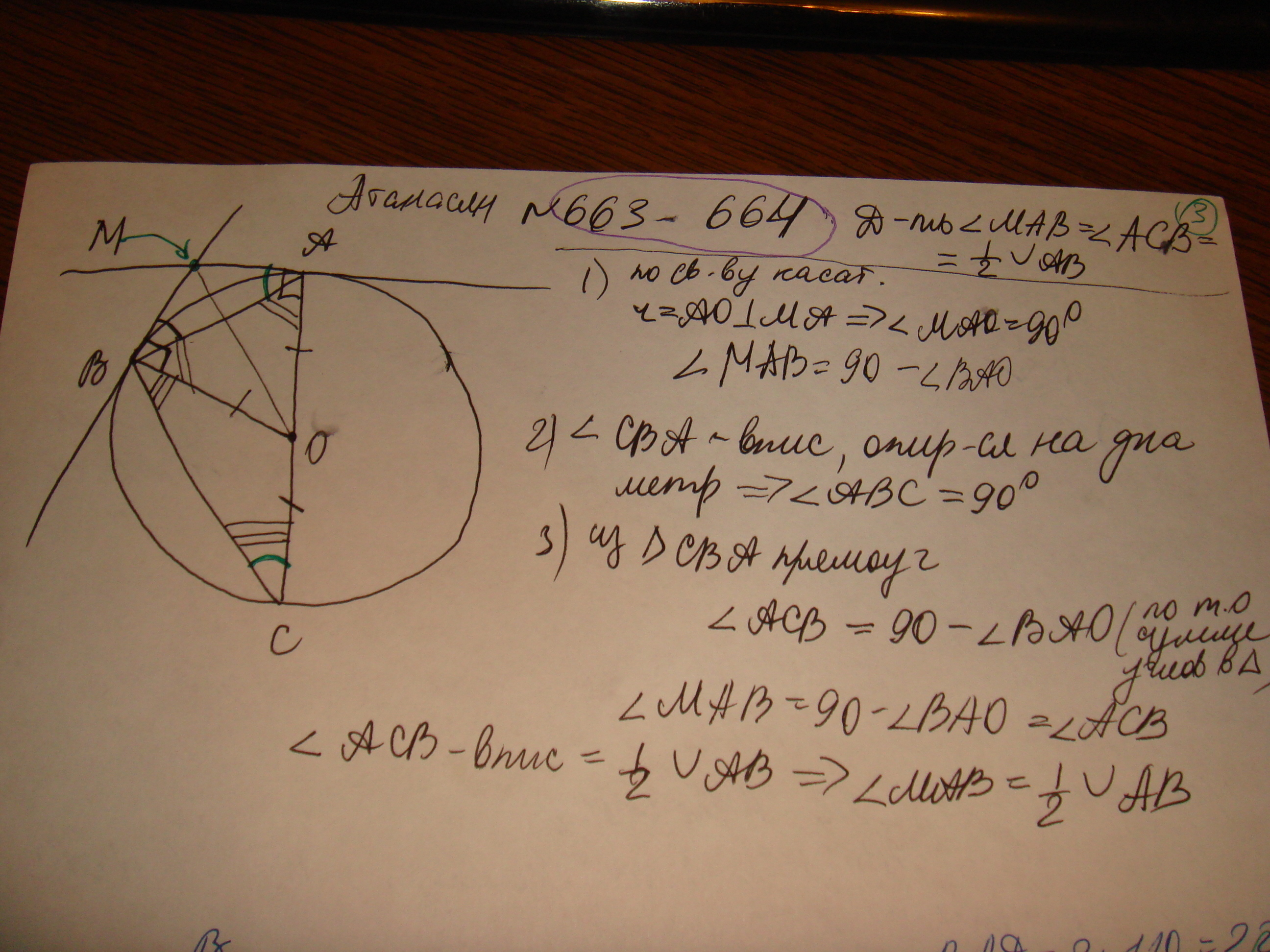 Есть такая задача-теорема - это номер 663-664 в учебнике Атанасяна, никто ее не помнит никогда, но в тестах она постоянно встречается, рекомендую выучить, звучит так: угол между касательной и хордой измеряется половиной дуги, расположенной внутри этого угла, или половиной соответствующего центрального угла, т.е. ∠ABC=1/2*∠AOB⇒∠AOB=2*∠ABC=2*18=36° ΔBOA равнобедренный, по теореме о сумме углов в Δ ∠OАB=(180-36)/2=72° Доказательство этой задачи 663-664 на листе, если нужно, обозначения другие, правда..