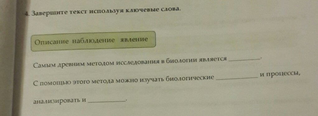 первый пропуск: наблюдение; второй пропуск: явления; пропуск три: выдвигать гипотезы