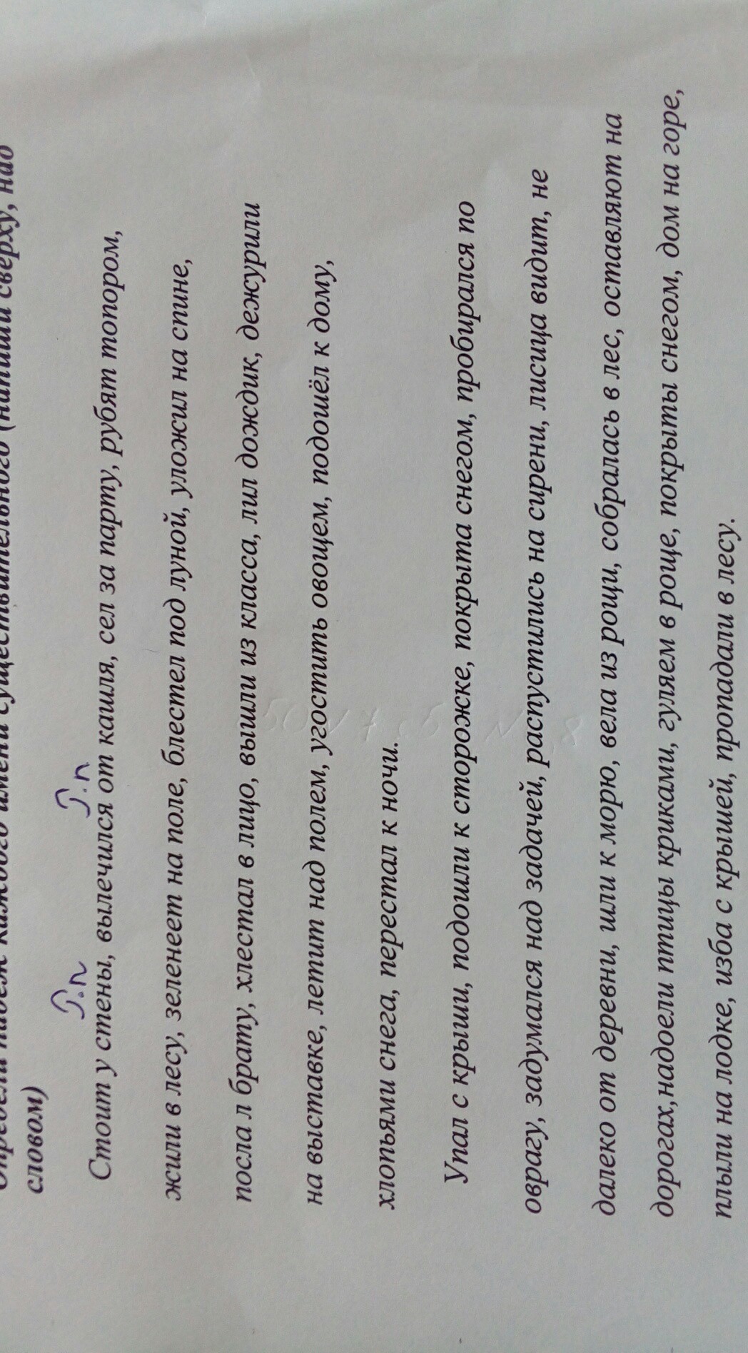 сел за парту в.п, рубят топором т.п, жили в лесу п.п, зеленеет на поле в.п, блестел под луной т.п, уложил на спине п.п, послал брату д.п, хлестал в лицо в.п, вышли из класса р.п, лил дождик в.п, дежурили на выставке п.п, летит над полем т.п, угостить овощем т.п, подошёл к дому д.п, хлопьями снега р.п, перестал к ночи д.п, упал с крыши р.п, подошли к сторожке д.п, покрыта снегом т.п, пробирался по оврагу д.п, задумался над задачей т.п, распустились на сирени п.п, лисица видит и.п, недалеко от деревни р.п, шли к морю д.п, вела из рощи р.п, собралась в лес в.п, оставляют на дорогах п.п, надоели птицы криками т.п, гуляем в роще д.п, покрыты снегом т.п, дом на горе п.п, плыли на лодке п.п, изба с крышей т.п, пропадали в лесу п.п