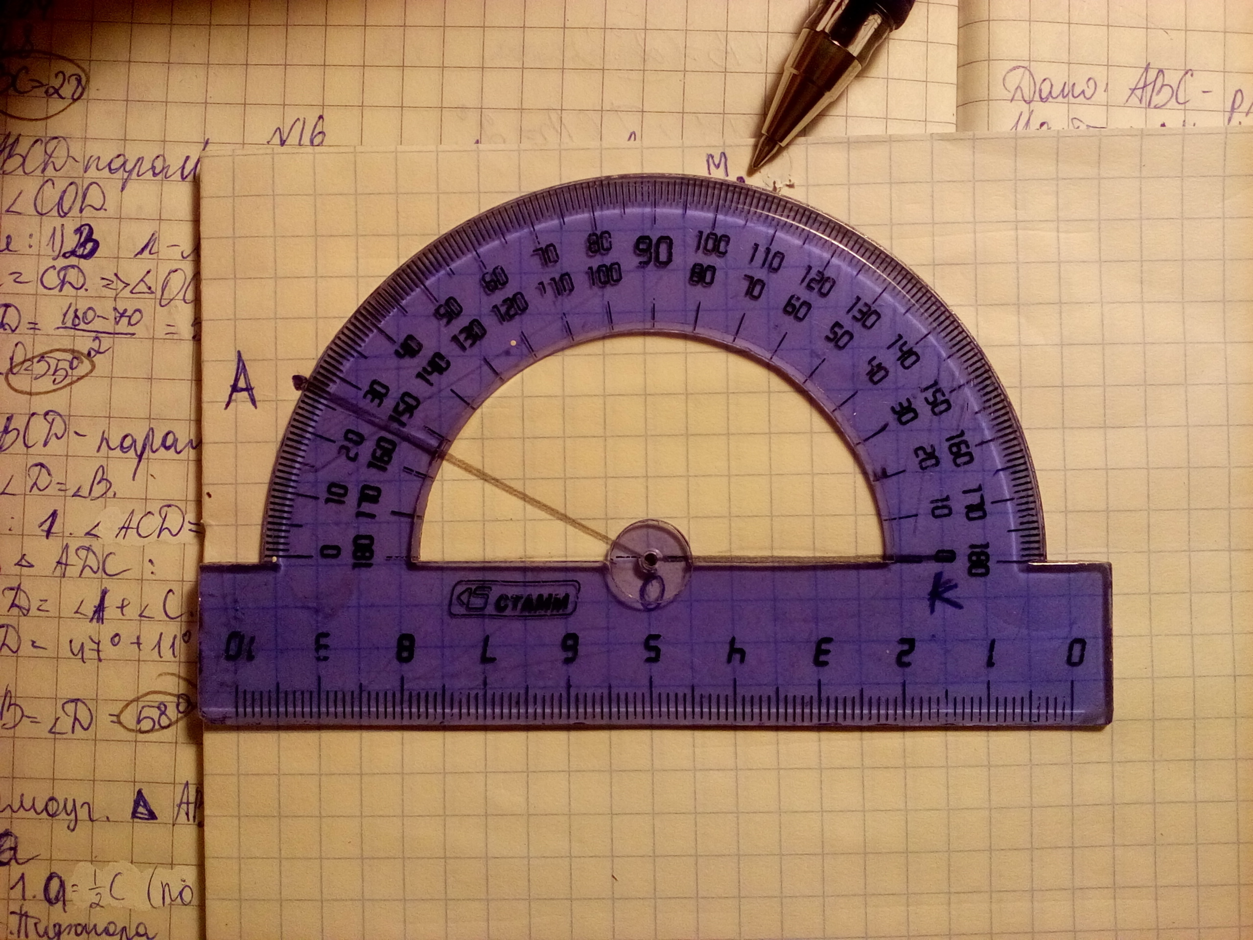 СРОЧНО СРОЧНО ЛЕГКО НО СЛОЖНОтПомогите срочно с помощью транспортира начертите угол АОК равный 154 градуса Проведите биссектрису ОМДанного угла и луч ОСПерепендикулярно лучу Ок найдите угол СОМ
