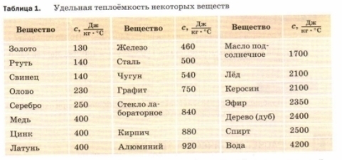 c = 920 Дж/кг·°C (джоуль, деленный на кг, умноженный на градус цельсия)