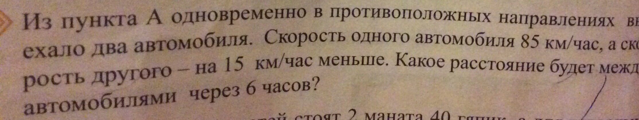 2) (85*6)+(70*6)= 930 (км) - будет расстояние между автомобилями через 6 часов.