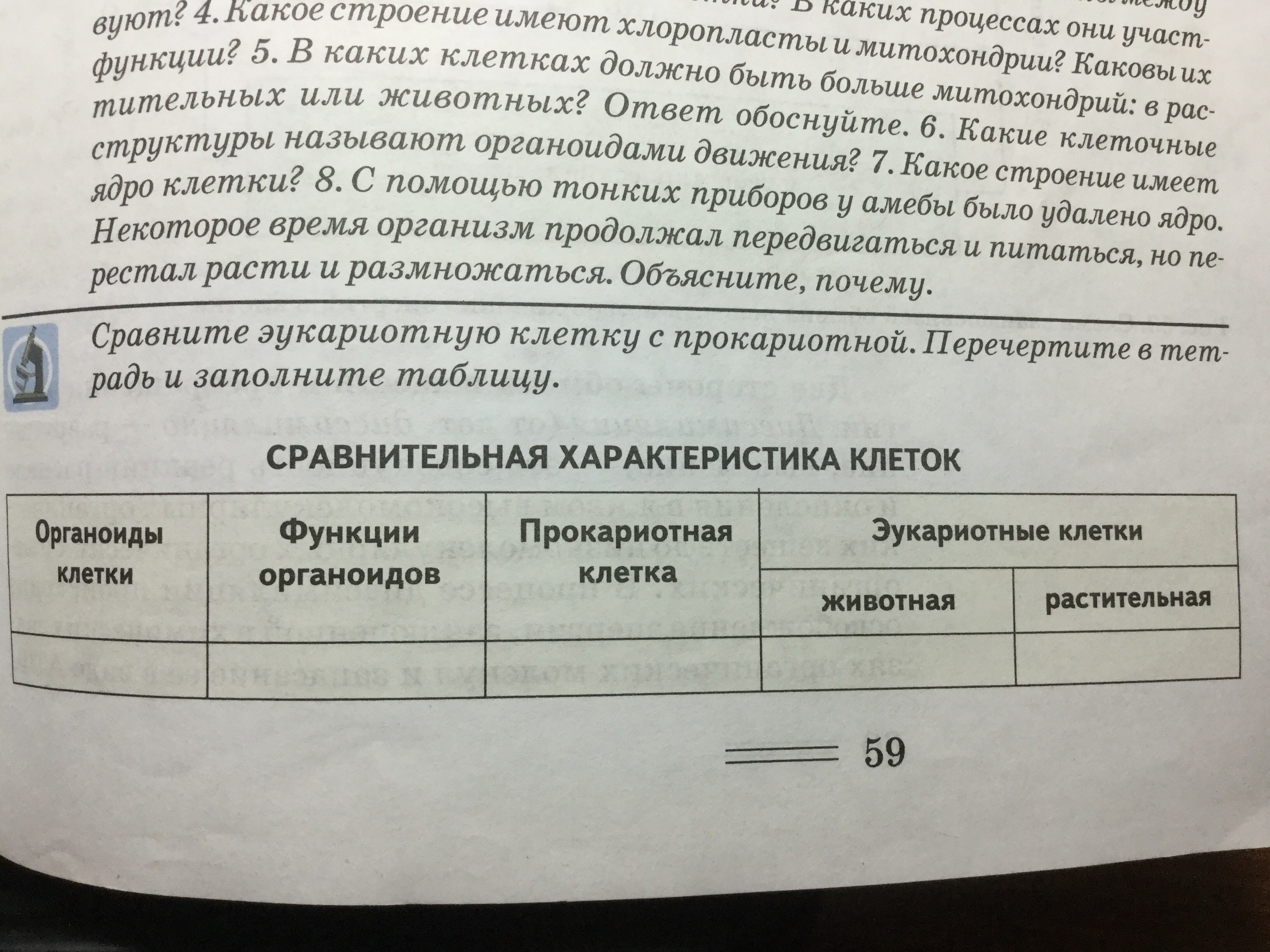 Помогите с таблицей по Биологии 9 класс «Сравнительная характеристика клеток»