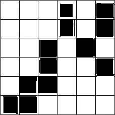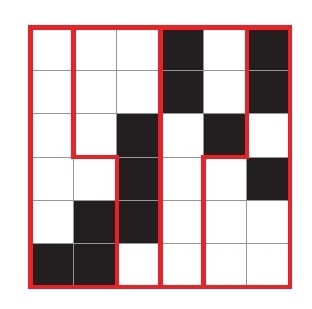 Разрежьте фигуру на 4 равные части так,чтобы в каждой из них оказалось 3 закрашенные клетки