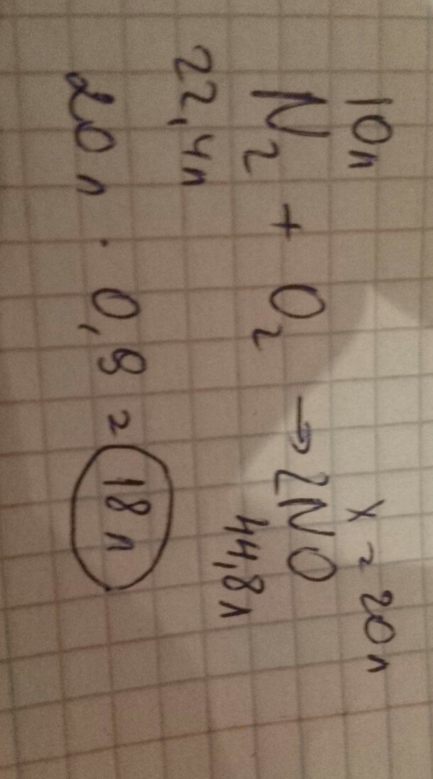 Задача: Опрелите объём оксида азота (2). который выделится при горении 10 литров азота, если выход продукта составляет 90 % от теоретически возможного.
