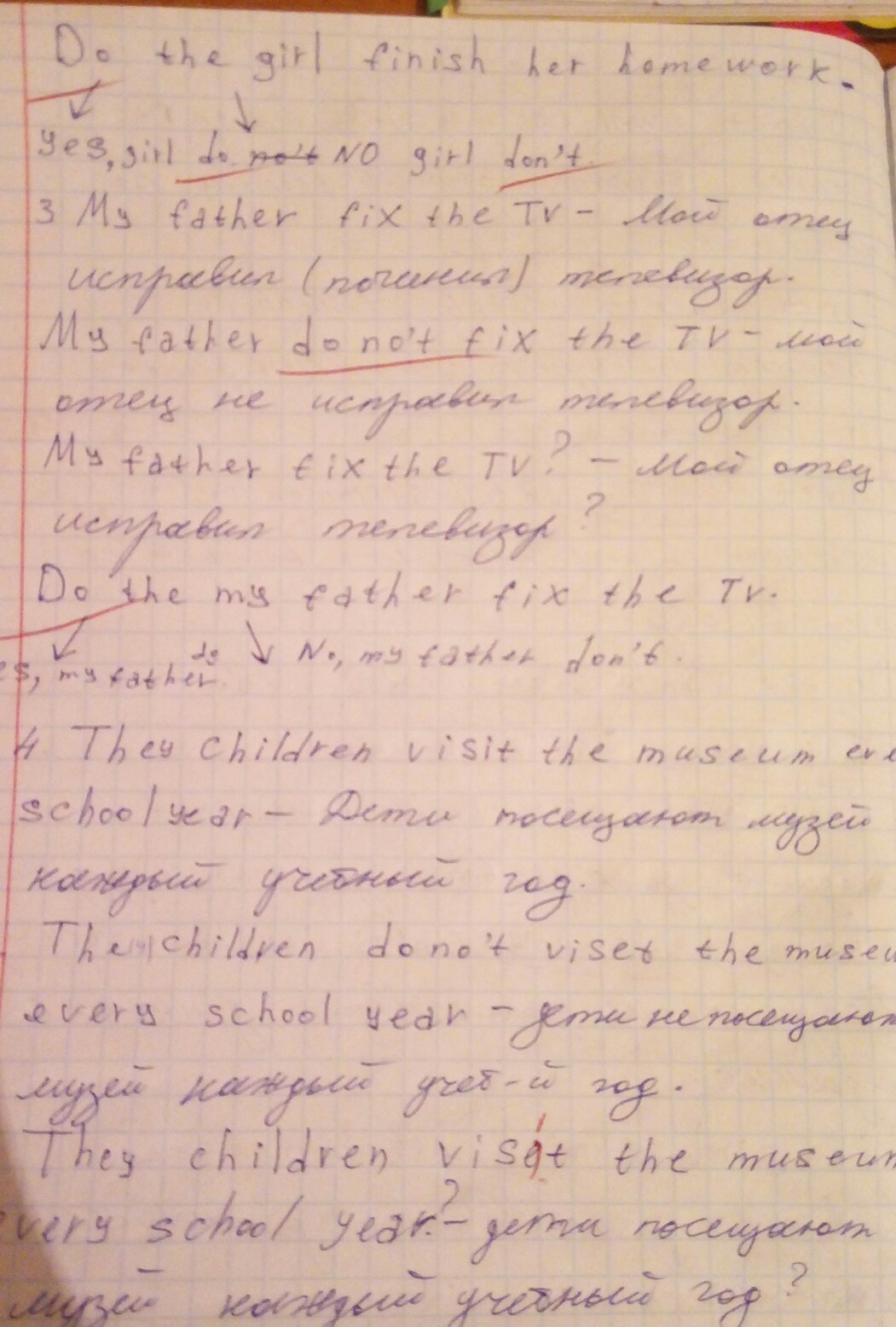 M6 father fixes the TV.My father doesn’t fix the TV.Does my father fix the TV? Yes,he does.No,he doesn’t.