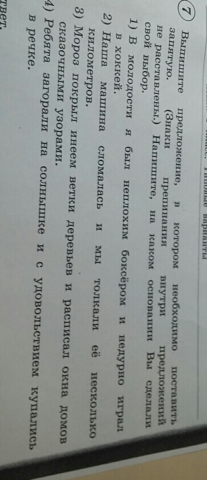 2)Наша машина сломалась,и мы толкали её несколько километров.Здеся нужна запятая перед и,так как во второй части предложения тоже есть грамматическая основа-подлежащее и сказуемое.