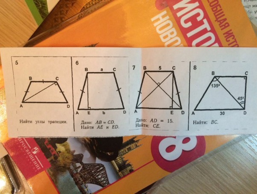 7) высота в прямоугольном треугольнике с равными катетами равна половине гипотенузы. Высота трапеции = сумме высот двух таких треугольников, образованных диагоналями и основаниями=15/2+5/2=20/2=10