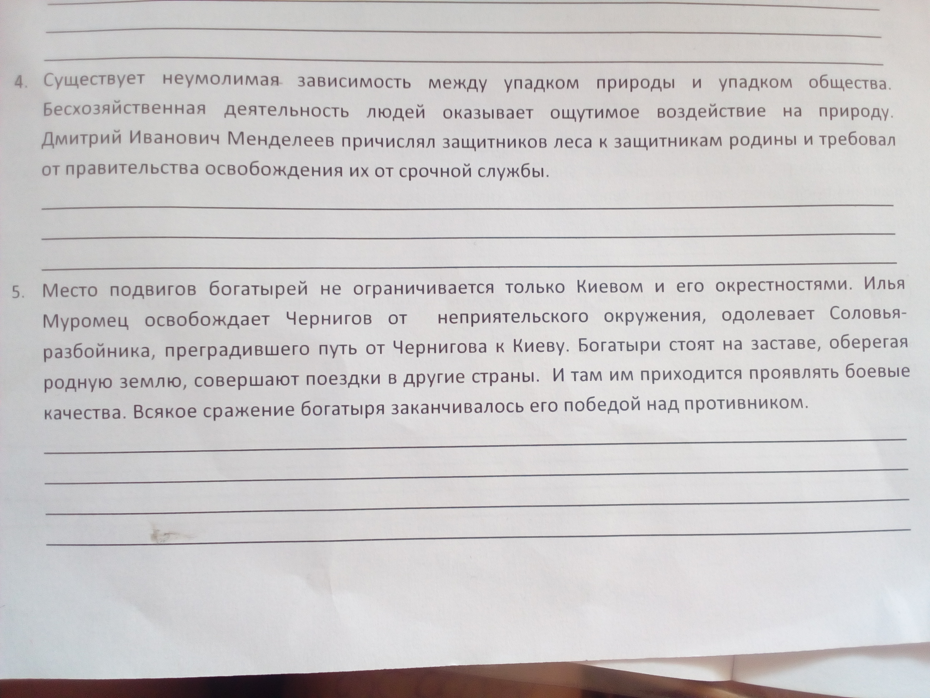 4. Ввиду острой связи упадка природы с упадком общества бесхозяйственность людей губит природу [уже сказано, что острое влияние, поэтому то, что СИЛЬНО губит природу, уточнять не надо]. Менделеев считал гринписовцев заслуживающими освобождения от любой службы.