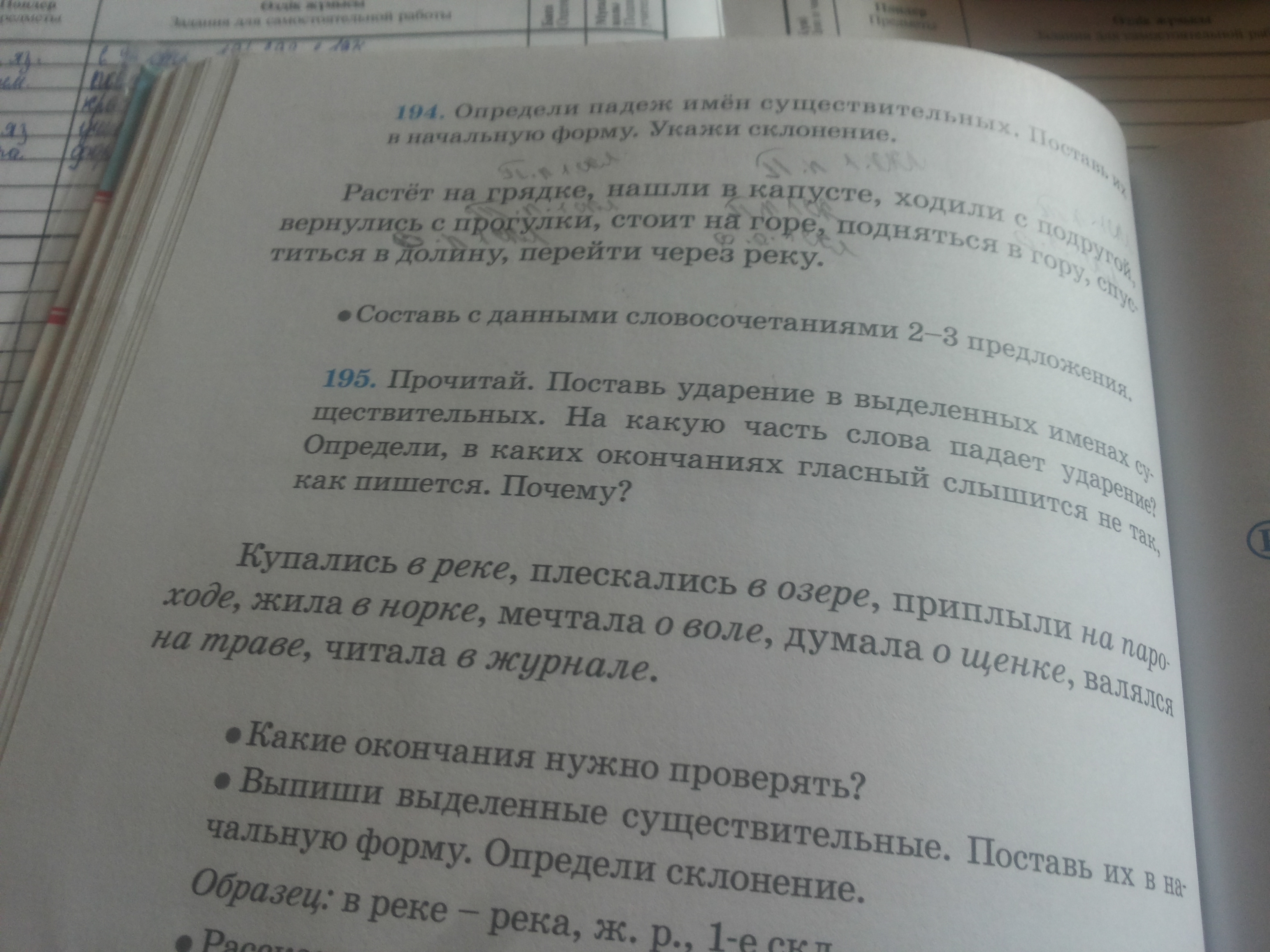 определи падеж имен существительных Поставь их в начальную форму укажи склонение упр 149