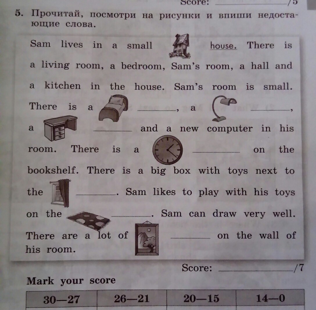 Bed, Lamp, Table, Clock, Window, Carpet, Pictures.