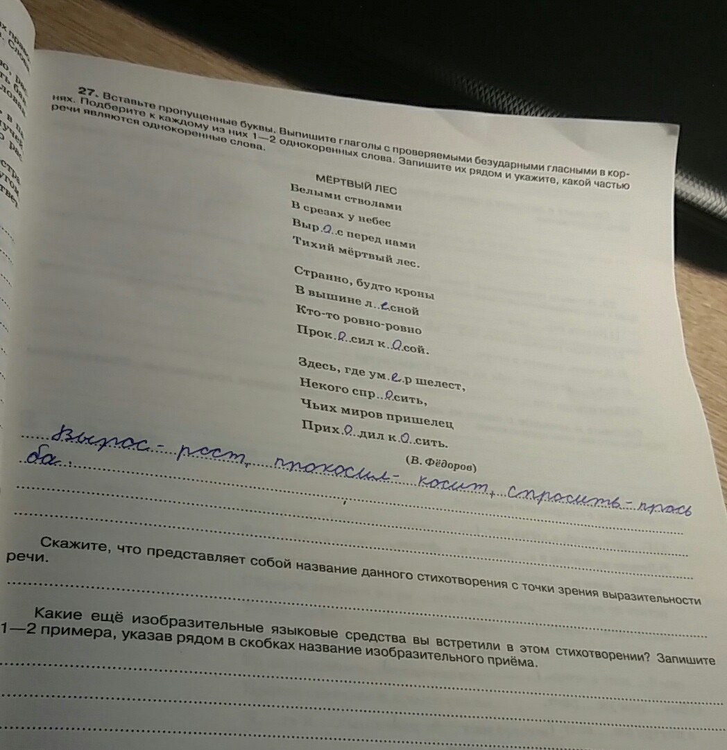 вставьте пропущенные буквы впишите глаголы с проверяемыми безударными гласными в корне корнях подберите каждому из них одно или два однокоренных слова запишите их рядом и укажите Какой частью речи является однокоренные слова
