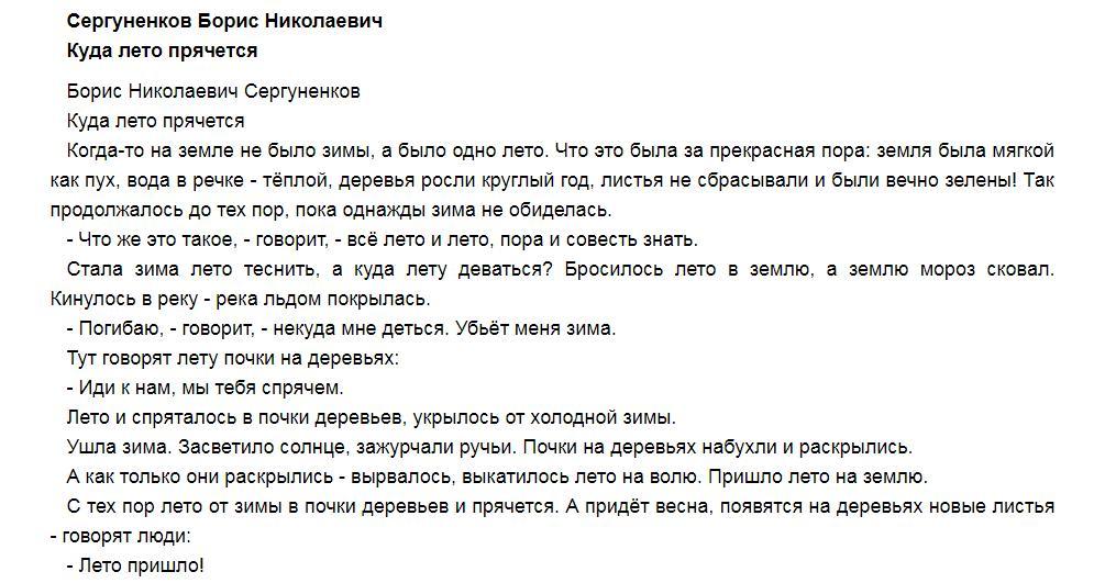Изложение по тексту Б.Н. Сергуненкова "Куда лето прячется" (оригинал в приложении).