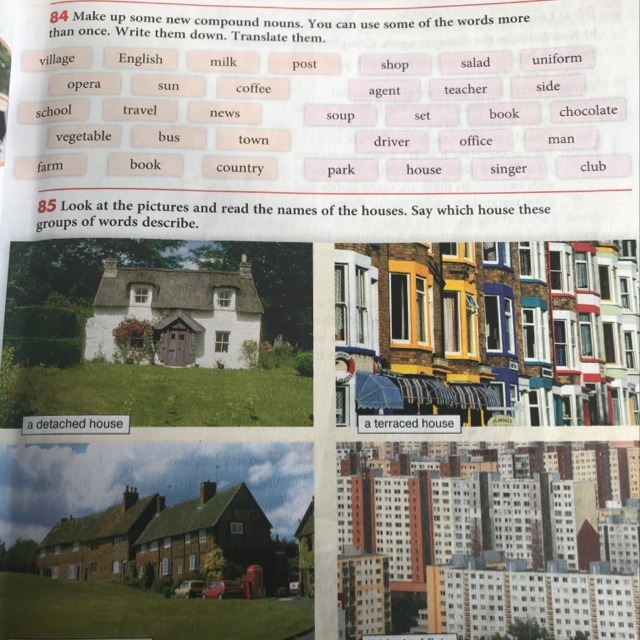 Post office, vegetable salad, school uniform, country house, opera singer, milk chocolate, bus park, English teacher, travel agent. Сейчас напишу вторую часть