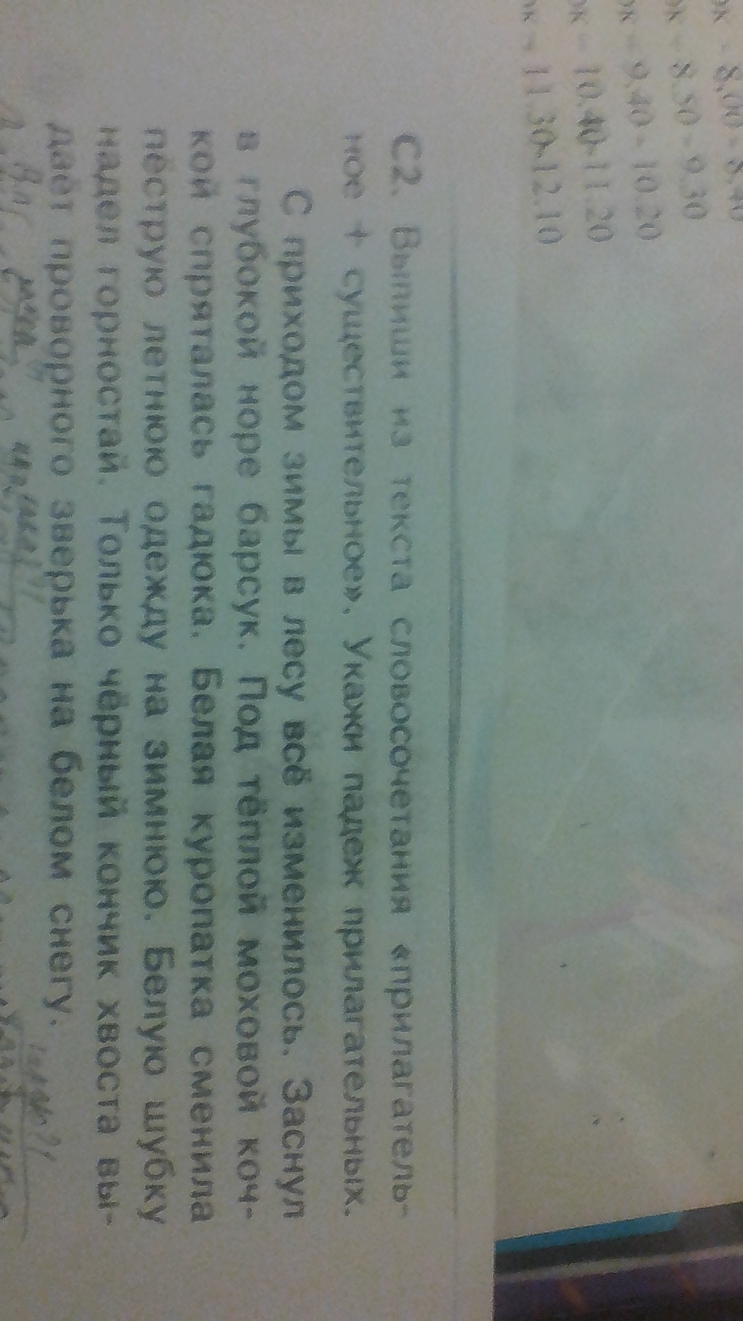 В глубокой норе(П. п.), под тёплой кочкой(П.п), под моховой кочкой(П.п), белая куропатка(И.п),