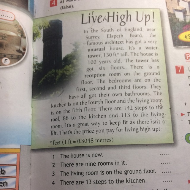 На Східній Англії біля Муррей відома архітектура має величезну незвичайність будинку це водяна вежа будинок 100 річний. ВЕЖА має 6 поверхів.Там є рецепція на 1 поверсі.Спальні є на 1,2 і 3 поверхах.Кожна з них має свою власну ванну кімнату.кухня на одному з 5 поверху ,а вітальня на одному з 4 поверху.Там є 142 сходинки в туалет.88 в кухню,і 113 в вітальню.Це є добре для схуднення тому,що там немає ліфту.Це ціна за яку ви платите за гостьову кімнату