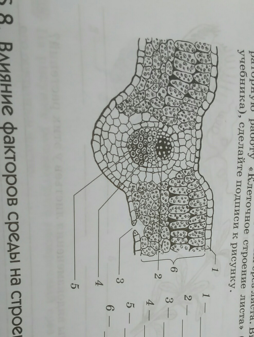 на рисунке изображен поперечный разрез листа. выполнить лабораторную работу " клеточные строения листа" сделай подпись к рисунке