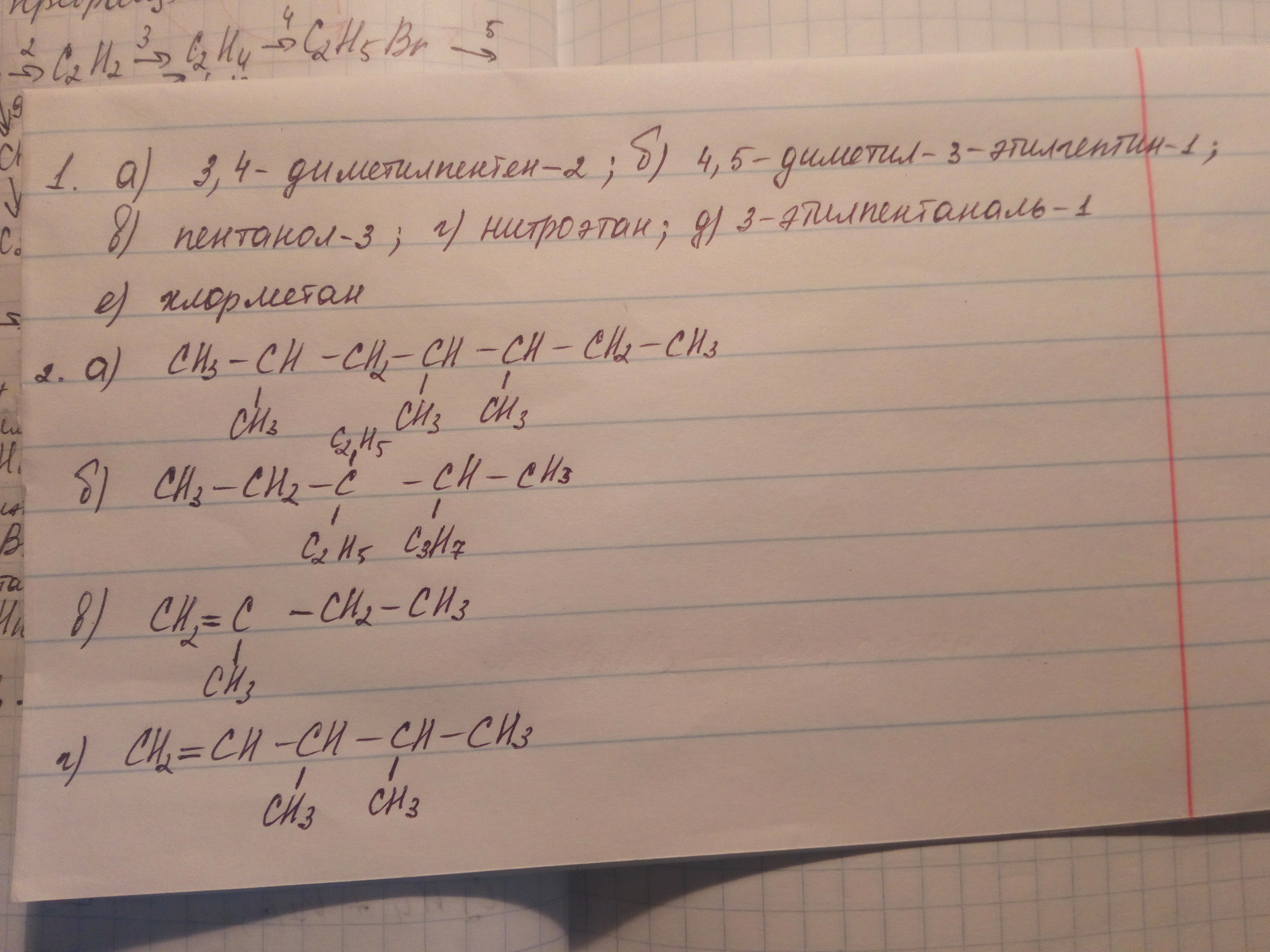 Солнышко, во втором задание г) не правильно я написала, там СН тройная связь С. Я просто подумала, что у тебя написано не пентин, а пентен
