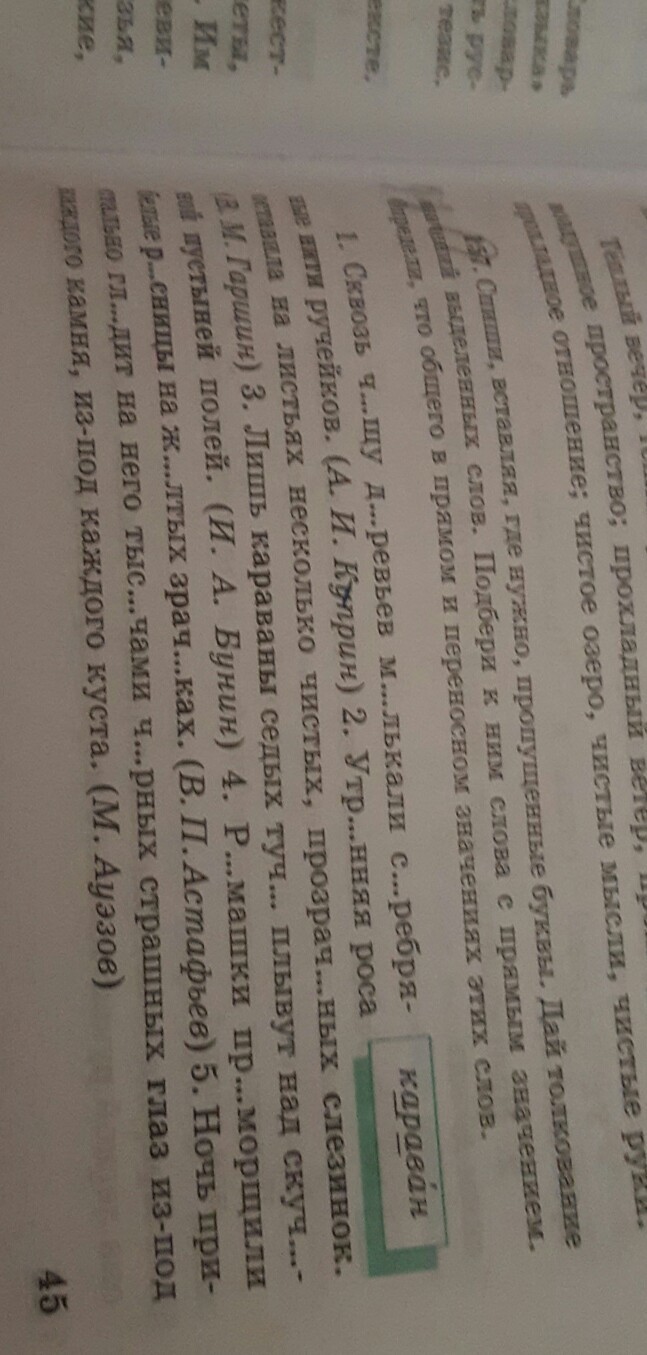 спиши вставляя где нужно пропущенные буквы дай толкование значение выделенных слов подбери к ним слова с прямым значением Определи их Что общего в прямом и переносном значениях этих слов упражнение 157