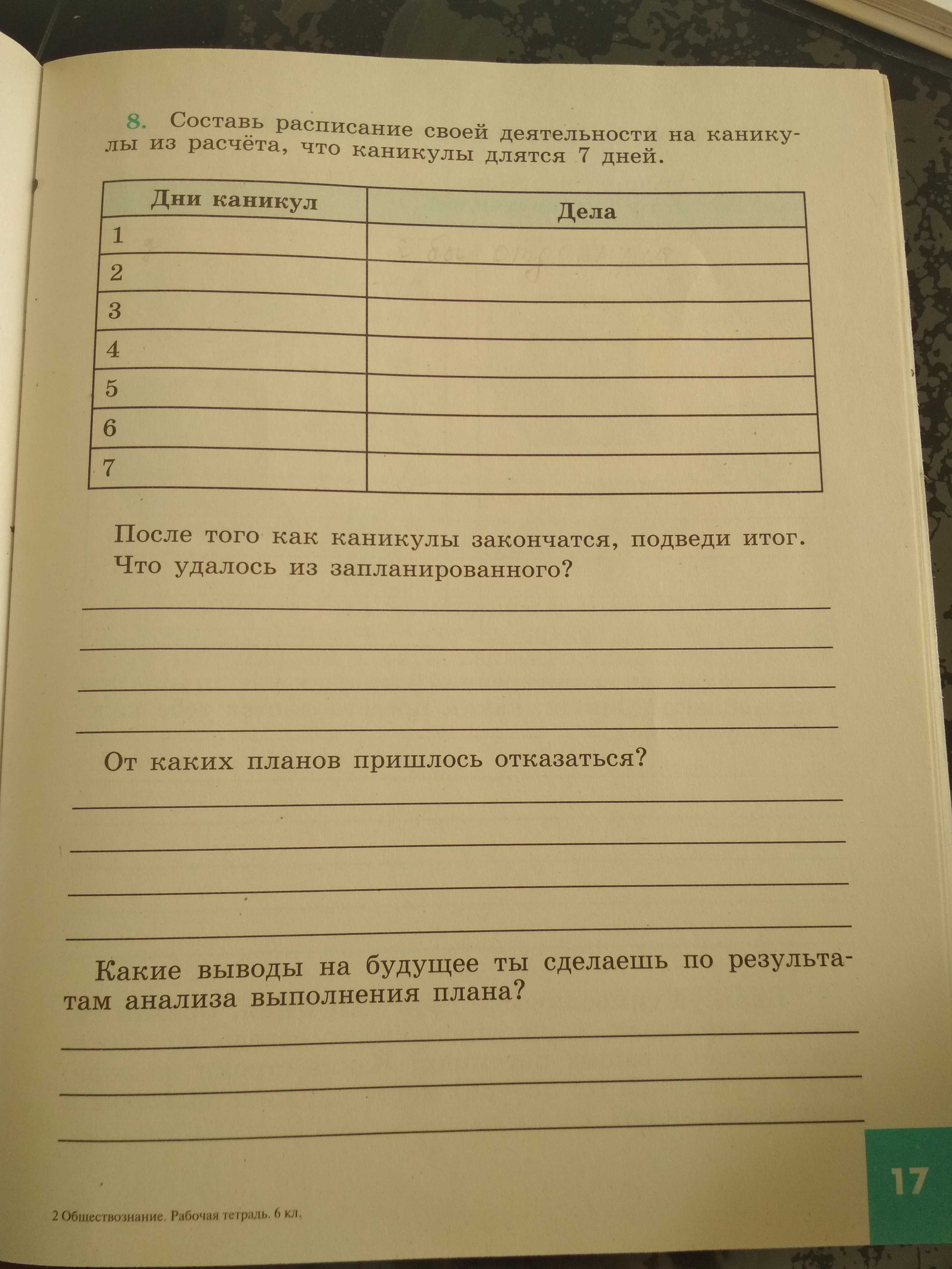 2)Вторник : записать о чём я прочитал в читательский дневник