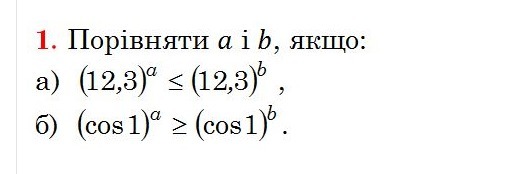 б) если (Cos1)ᵃ ≥ (Cos1)ᵇ , то a ≤ b так как косинус в первой четверти убывает