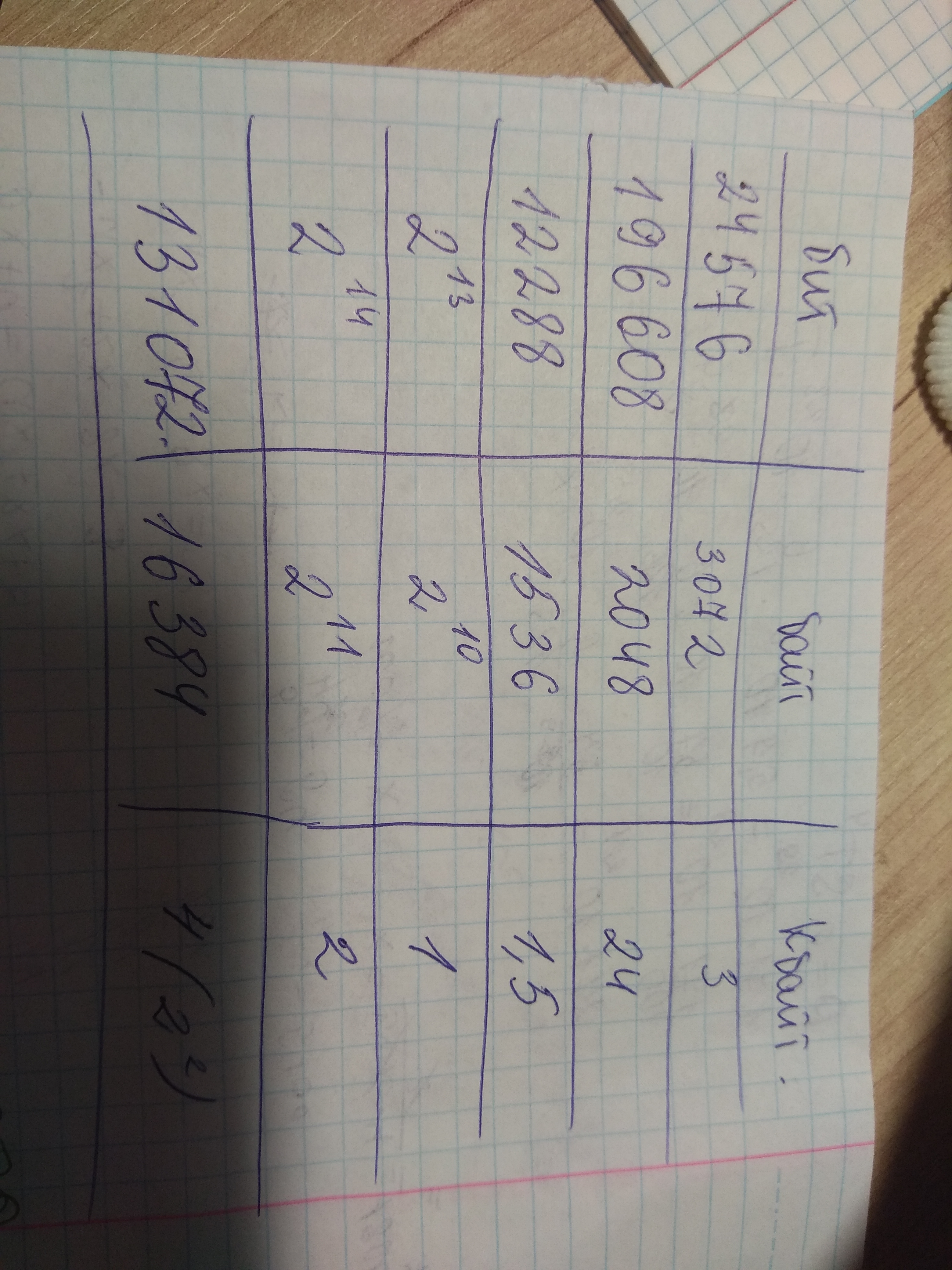 1 байт=2^10 Кбайт