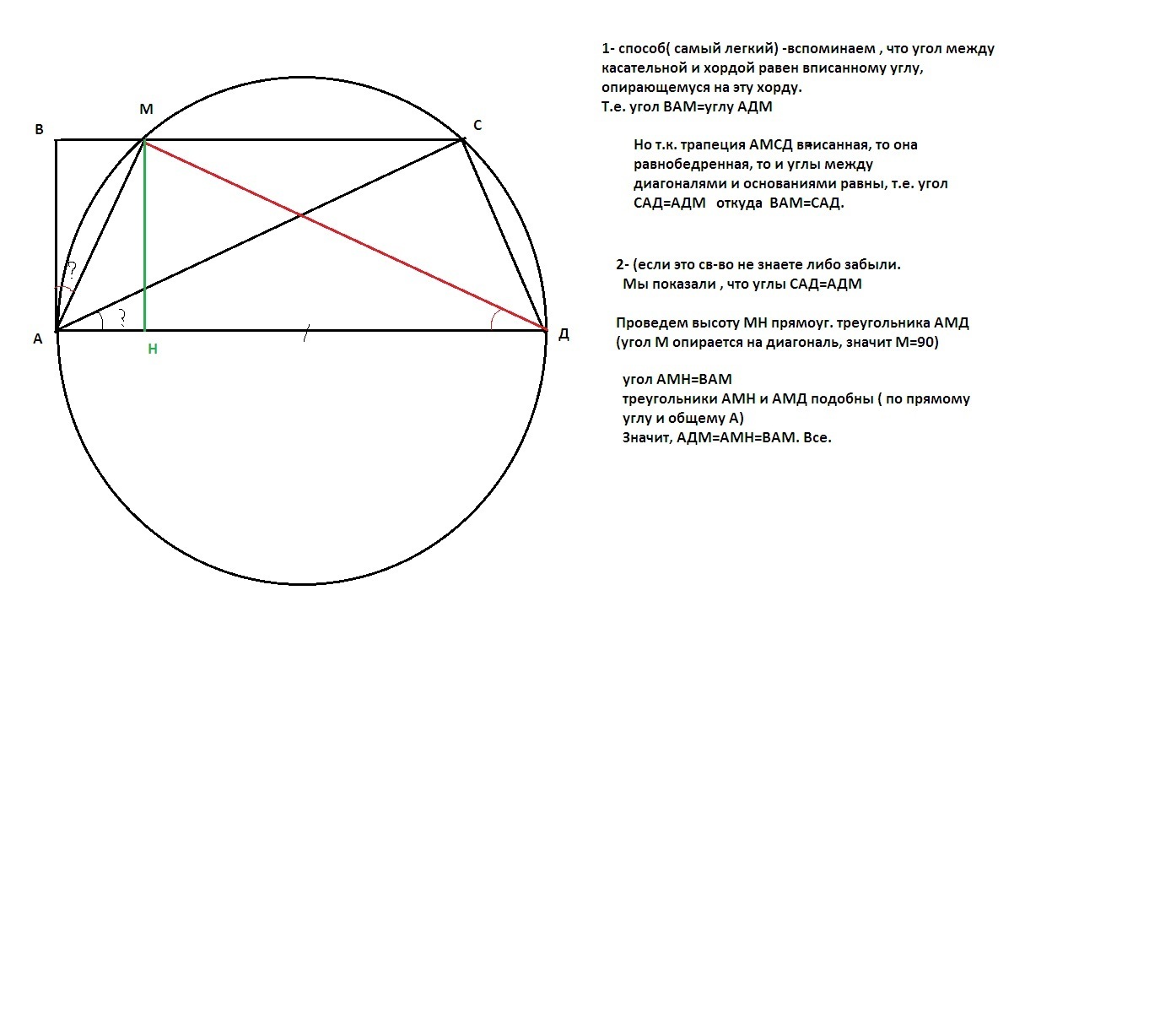 В трапеции ABCD угол BAD прямой. Окружность, построенная на большем основании AD как на диаметре, пересекает меньшее основание BC в точке C и M.