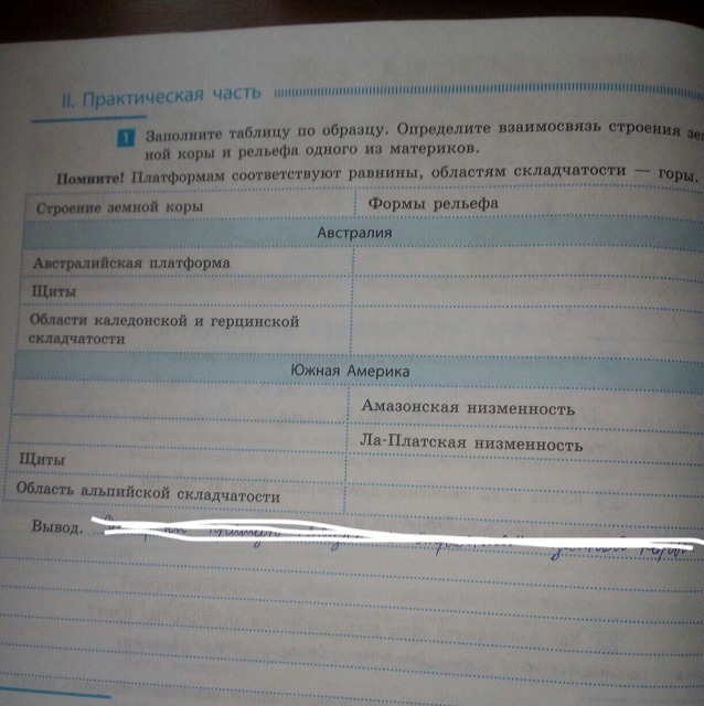 У меня нет атласа за этот класс. Твоя задача найти на карте, например на Австралии, щиты, платформы и тд. Это у тебя прям написано будет. "Австралийский щит" или немного по другому. Тебе нужно работать чисто с атласом. И наоборот (Южная Америка). Участки тебе даны, где все это искать.