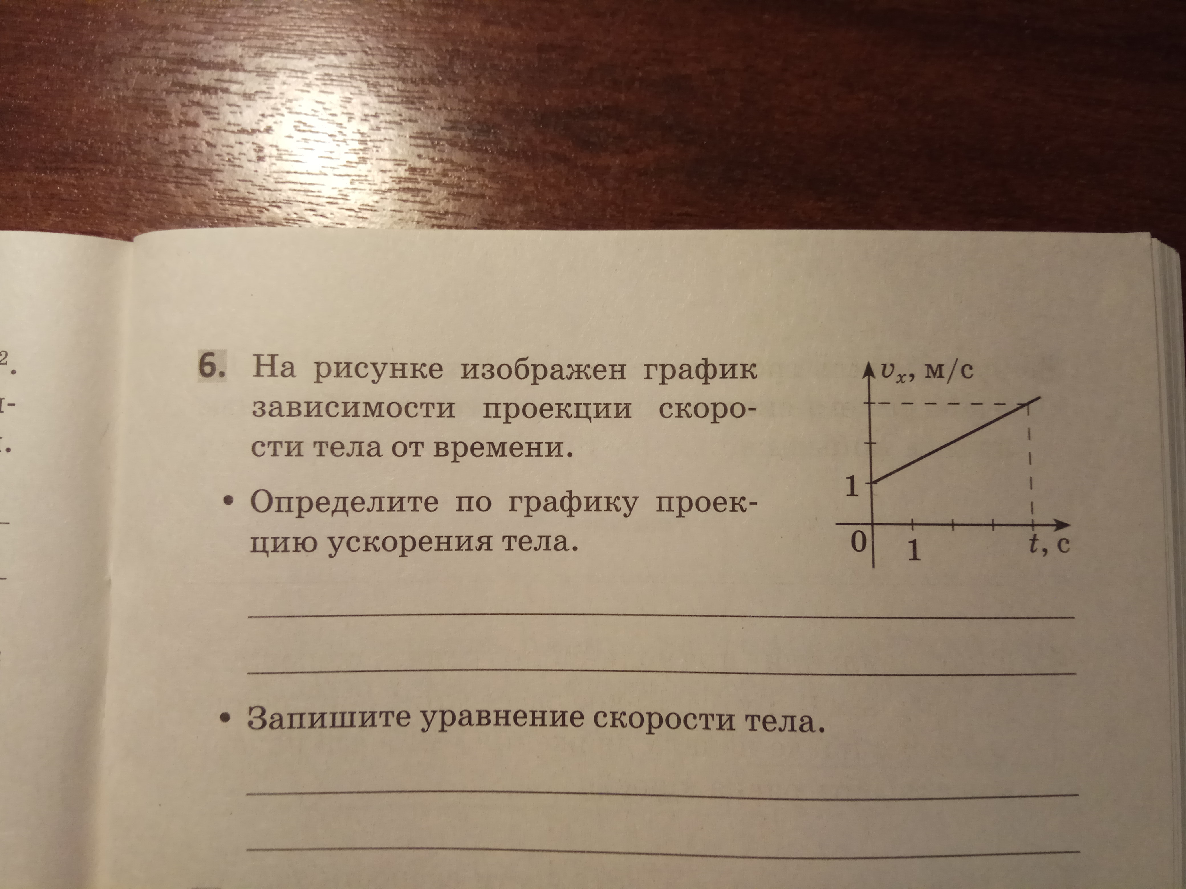 На рисунке изображён график зависимости проекции скорости тела от времени. А) Определите по графику проекцию ускорения тела. Б) Запишите уравнение скорости тела.