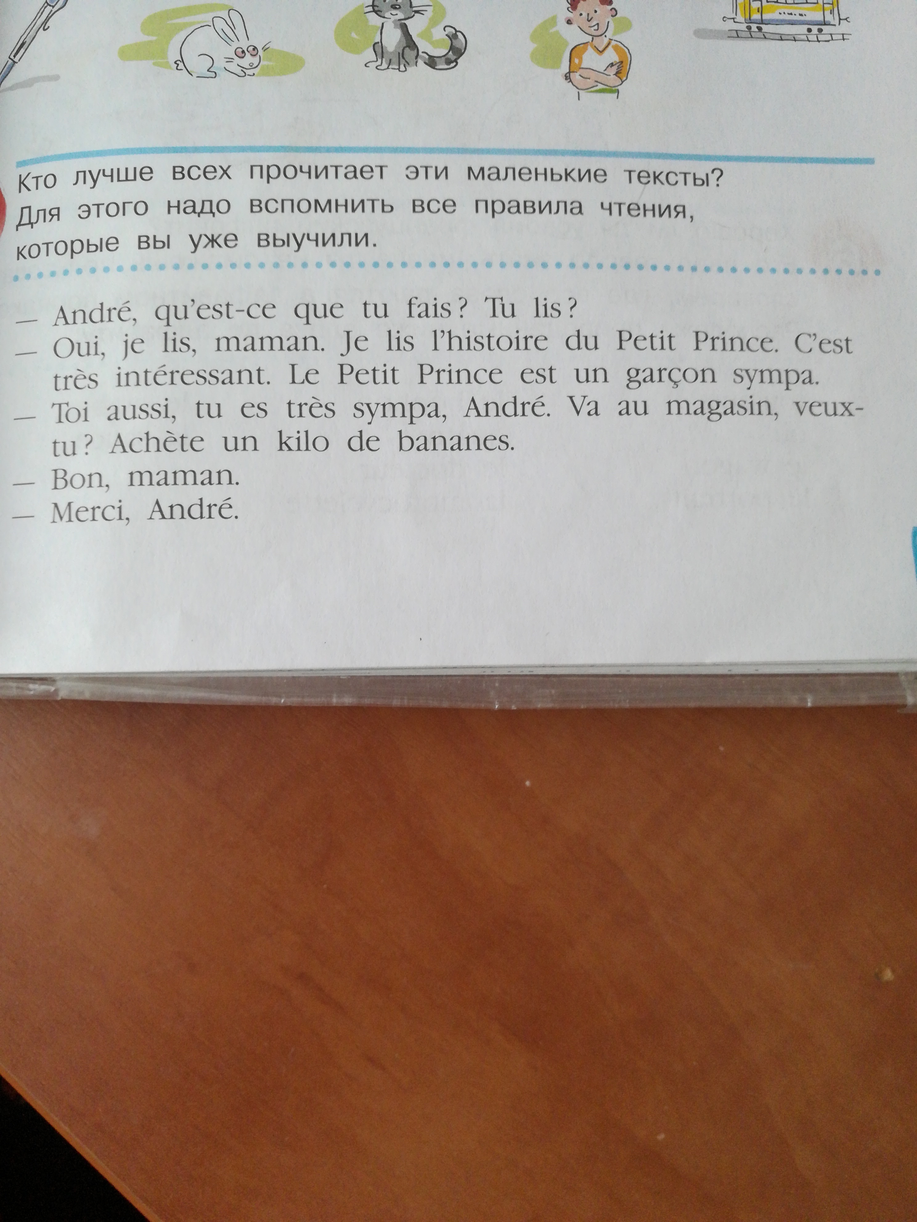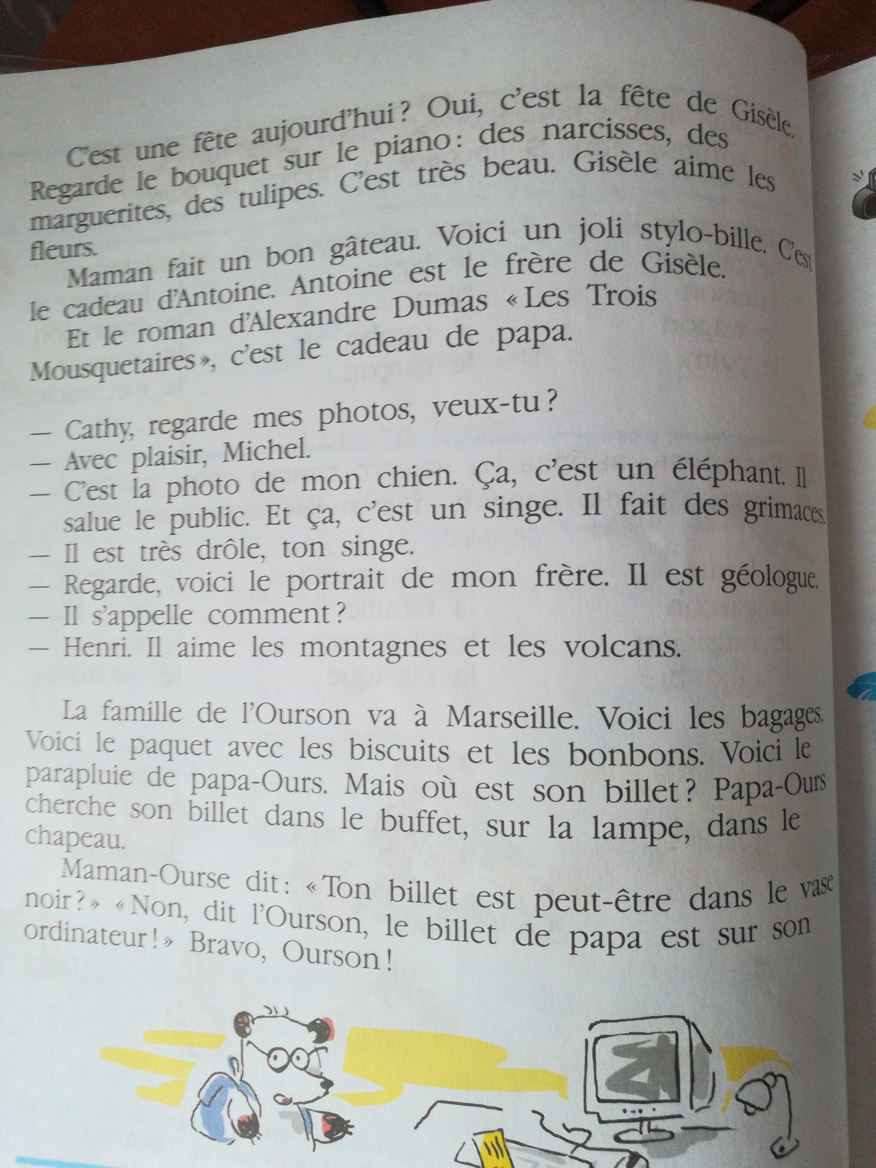Мама готовит вкусный торт. Вот красивая шариковая ручка. Это подарок Антуана. Антуан - брат Жизель.