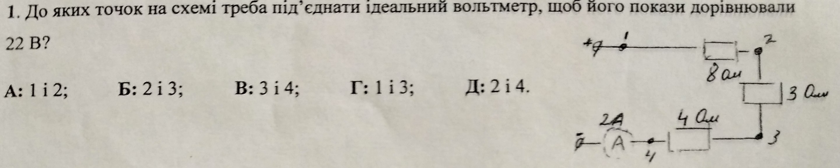 Исходя из предложенной схемы вольтметр нужно подключить к точкам 1 и 3