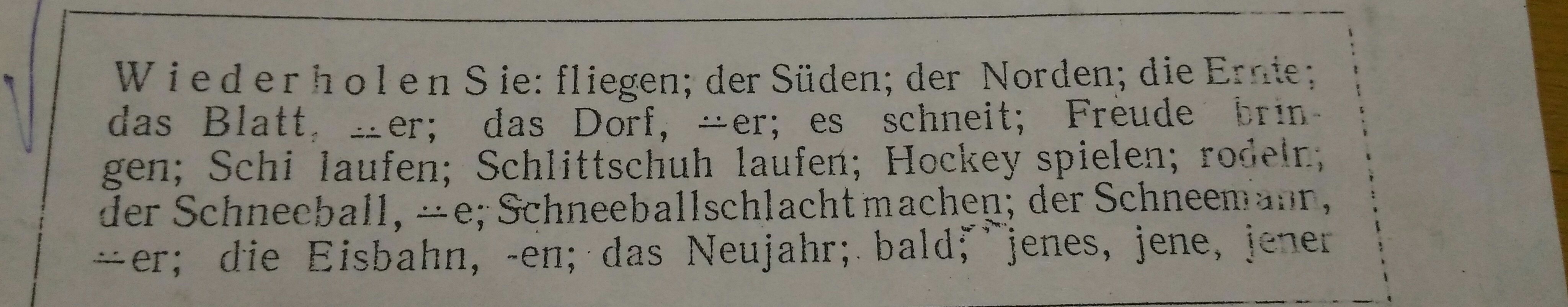 Летать, юг, север, урожай, бумага, деревня, идёт снег, друзья принесли, кататься на лыжах, кататься на коньках, играть в хоккей, кататься на санках, снежный ком, делать/лепить снежки, снеговик, каток, Новый Год, скоро, то, те/та, тот