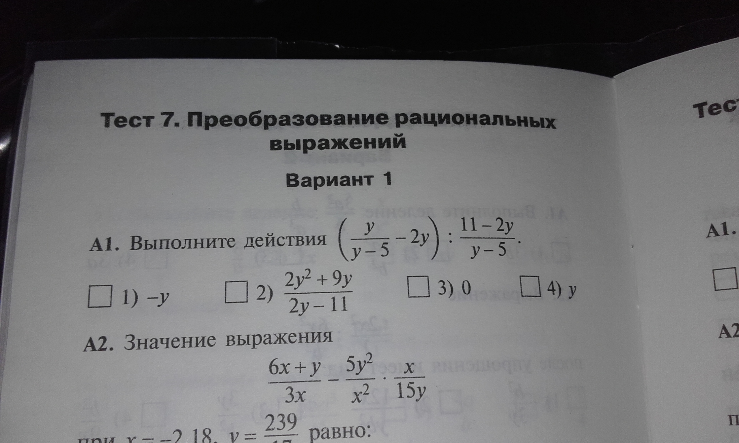 ( frac{y}{y-5}-2y ): frac{11-2y}{y-5}= frac{y-2y(y-5)}{y-5}* frac{y-5}{11-2y}=frac{y-2y^2+10y}{1}* frac{1}{11-2y}= \\ =frac{11y-2y^2}{11-2y}=frac{y(11-2y)}{11-2y}=y