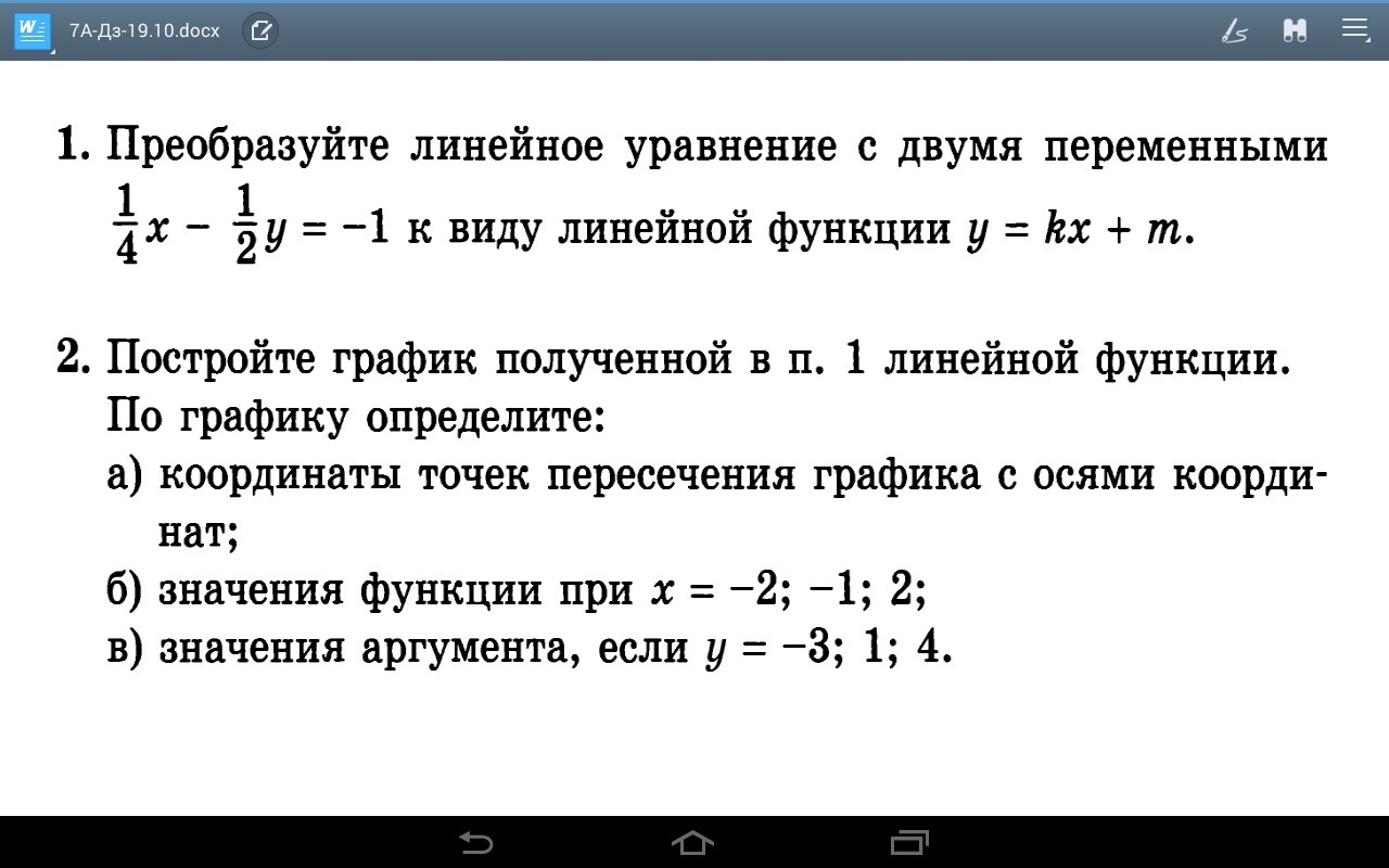 в) Аналогично предыдущему заданию, только теперь наоборот нужно подставлять значение у и находить х.