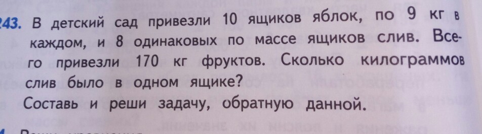 В детский сад привезли 8 ящиков слив, по 10 кг в каждом, и 10 одинаковых по массе ящиков с яблоками. Всего в детский сад привезли 170 кг фруктов.Сколько кг яблок было в одном ящике?