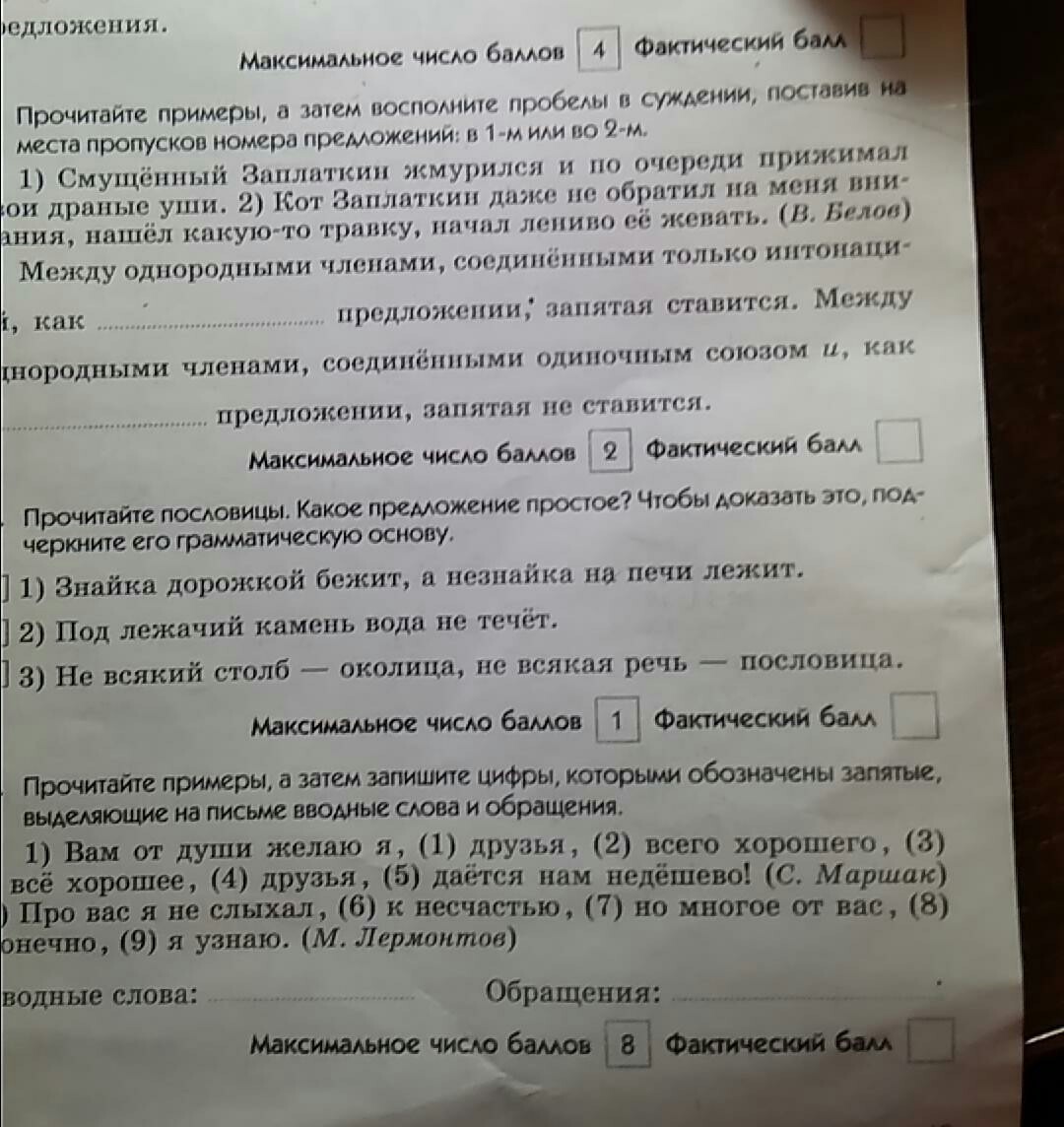 Вводные слова:6к несчастью, 7; 8конечно, 9;