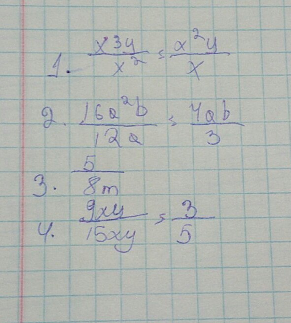 3)5m2- m2/8m =m2(5-1)/8m = m(5-1)/8 = 5m-m/8 (выносим m2 за скобку в числителе, сокращаем m2 за скобкой и 8m под чертой дроби, получаем m за скобкой и 8 под чертой дроби, перемножаем в числителе и получаем 5m-m/8