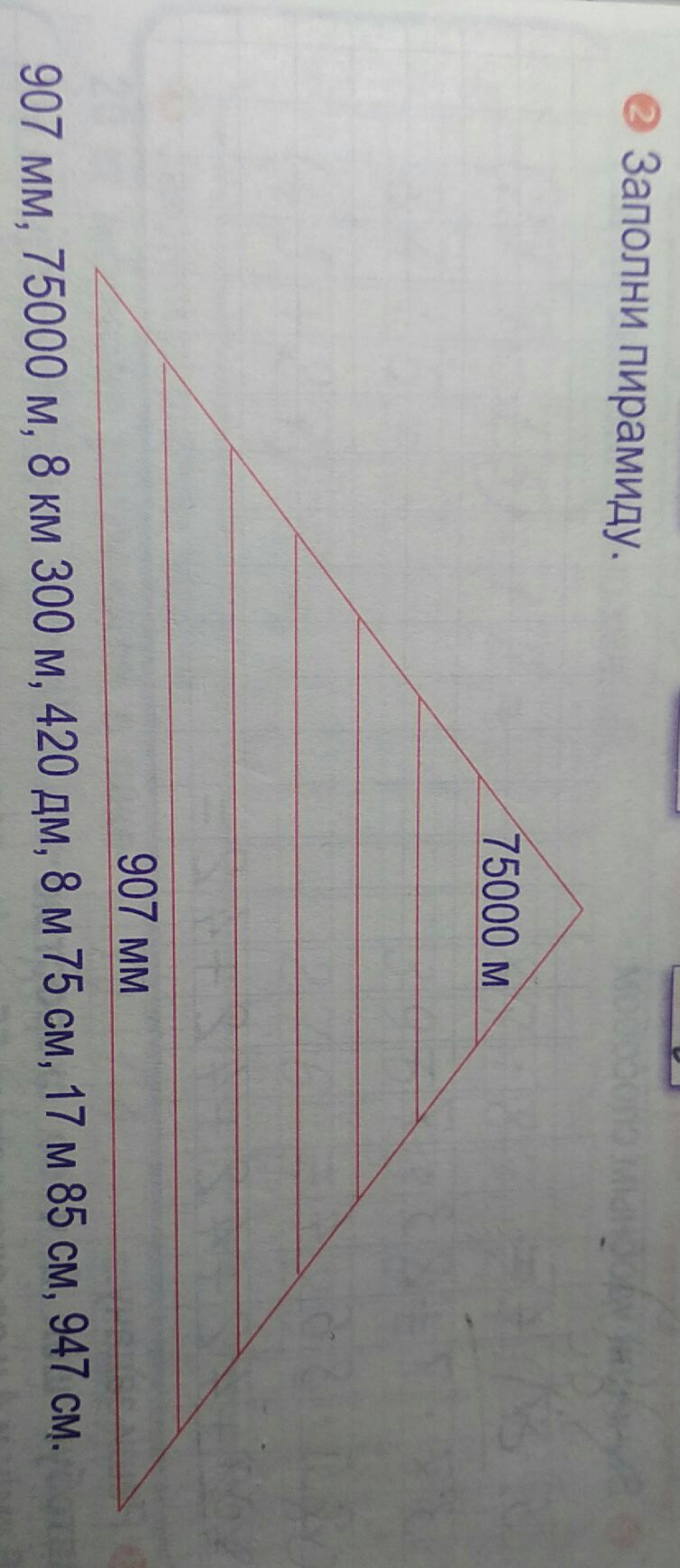 75000м, 8км 300м, 17м 85см, 8м 75см, 420дм, 947см, 907мм