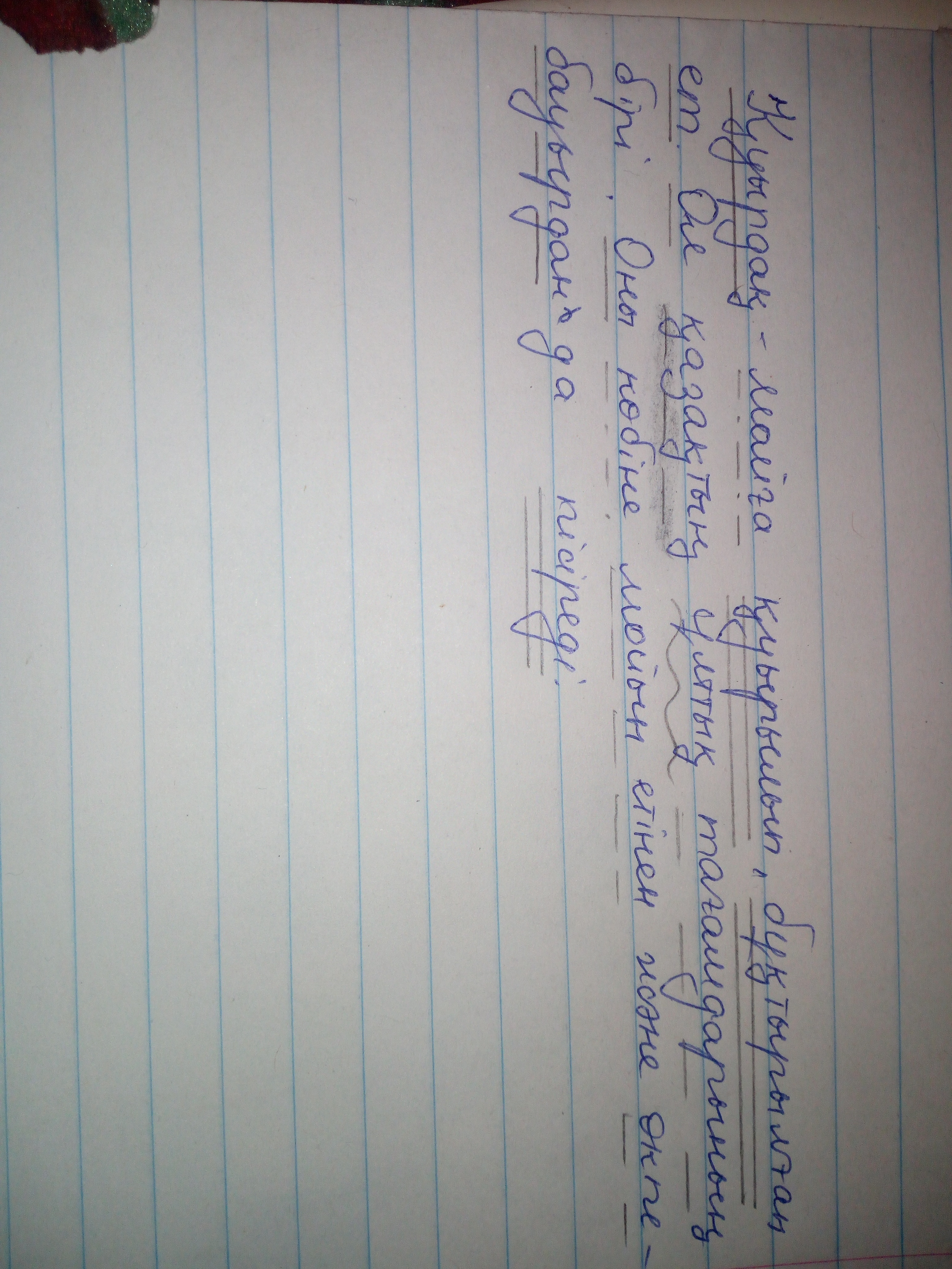 Синтаксический разбор на казахском языке Қуырдақ - майға қуырылып, бүқтырылған ет. Ол қазақтың үлттық тағамдарының бірі. Оны көбіне мойын етінен және өкпе- бауырдан да пісіреді. Помогите пожалуйста!