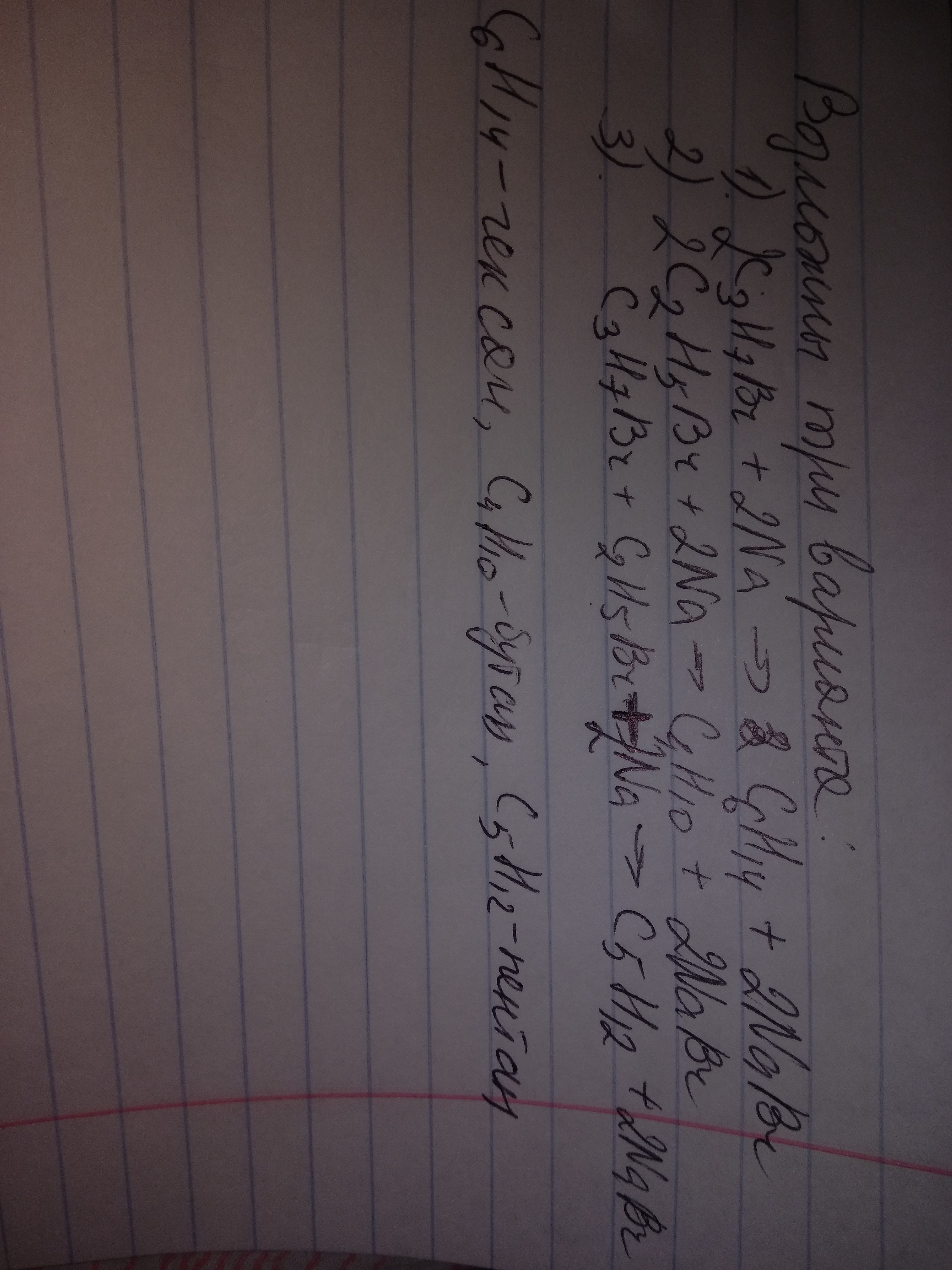 Смесь бромэтана и бромпропана обработали металлическим Na при t. Написать уравнения происходящих реакций. Назвать продукты