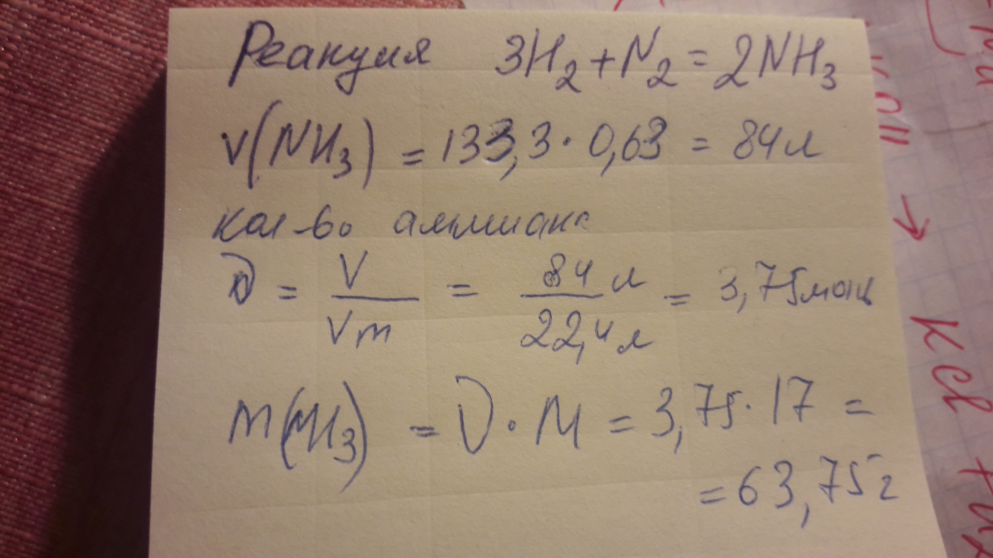для синтеза аммиака использовали 200 л водорода (н.у.) Какая масса продукта образов.если практичес. выход составл. 63%