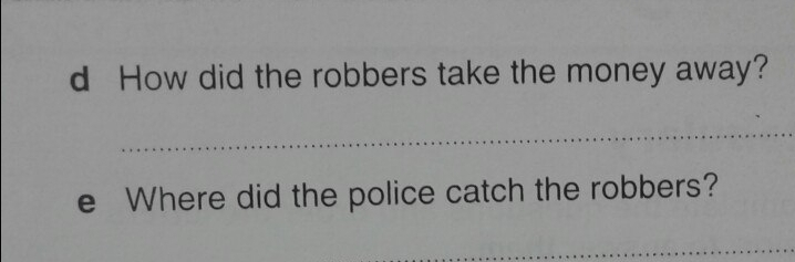d)When the train stopped, the robbers got on the train und told the driver to take it to the next bridge. They didn't use guns but they hit the train driver on the head with an iron bar, hurting him badly.