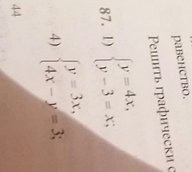 left { {{y=4x} atop {y-3=x}} right. \\
