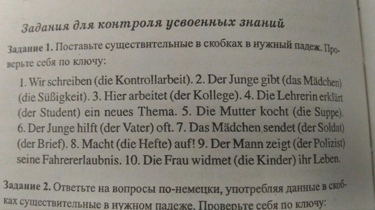 2. Der Junge gibt dem Mädchen (Dativ) die Süsigkeit. (Akkusativ). Мальчик дает девочке сладость.